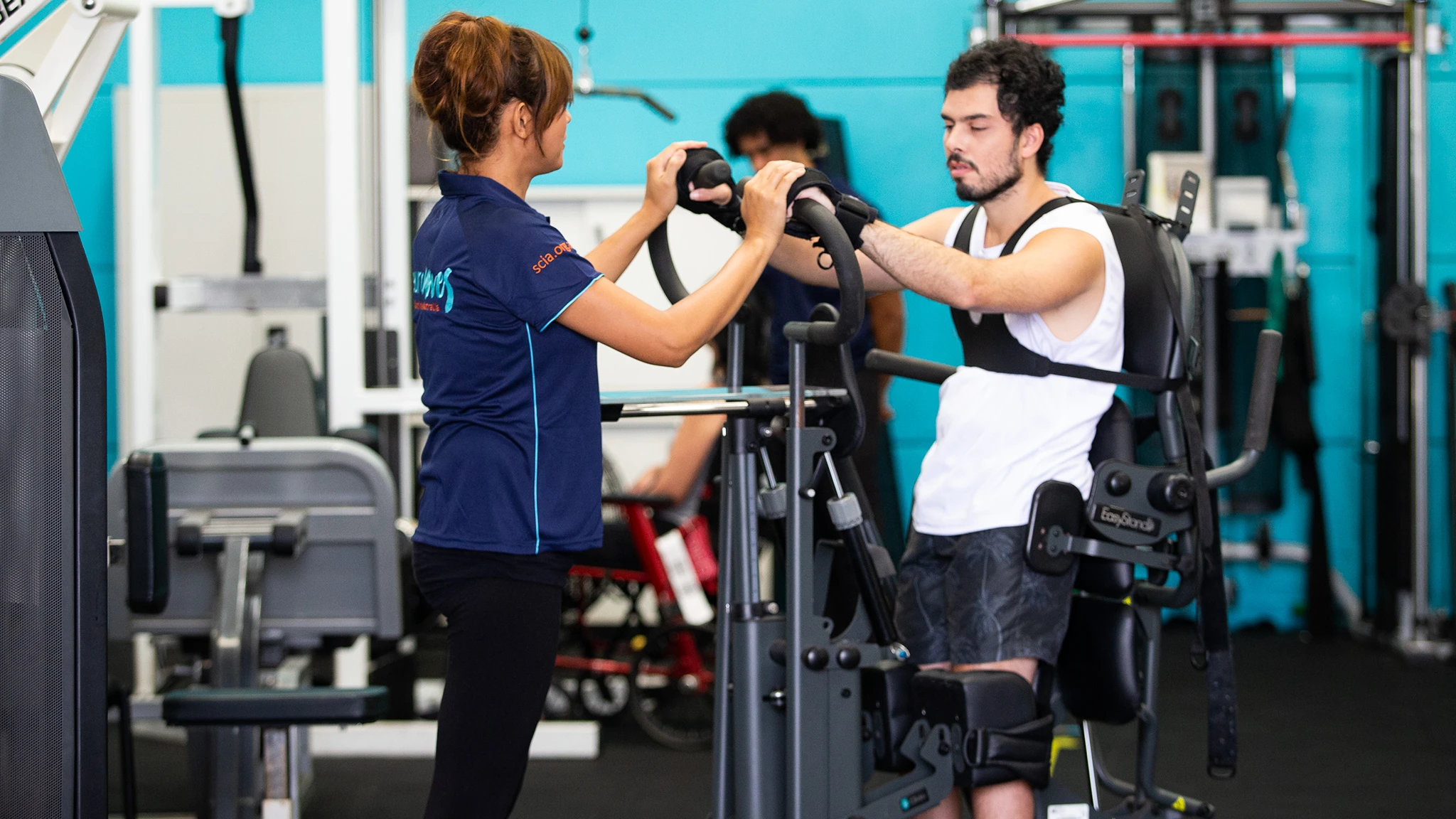 We use our wide range of specialised exercise equipment on site which can be easily used by people living with disability. We also have access to a heated hydrotherapy pool on site.